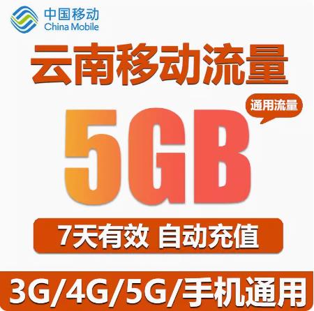 • 昆明移動(dòng)流量充值5G通用移動(dòng)7天流量疊加包